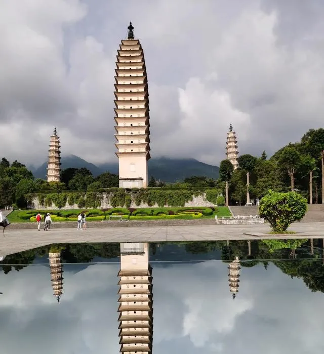 这一张还是三塔,如今的广场把距离拉开,倒影里塔身再立一遍,游客站在水边不说话,手机举久了手臂酸,风一吹云就动,塔不动,旧影新影在水里握个手。