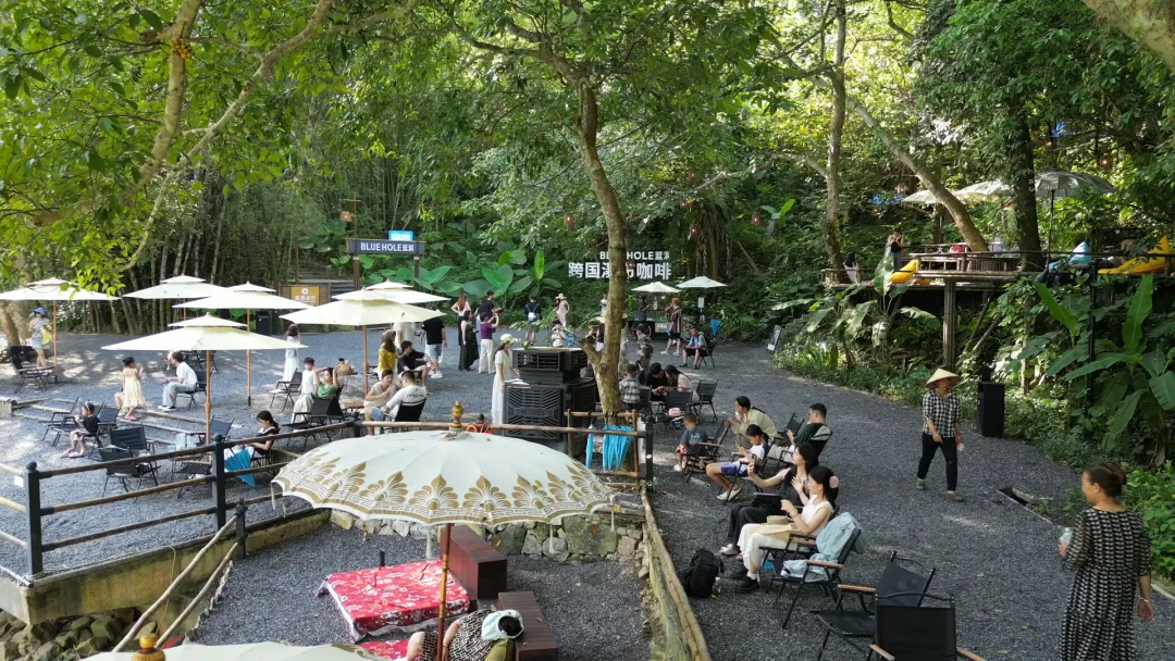 蓝洞咖啡溶洞咖啡、界河观景、瀑布光影、稻田打卡,年轻人必到的“松弛感地标”,日均客流爆满、出片率100%。