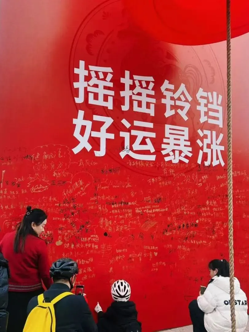 活动期间,景区入口大牌坊处的“铃愿墙”引来了许多游客驻足打卡,大家亲手写下马年的期许“家人安康”“万事顺遂”“前程似锦”,一笔一画皆是心意,一摇一响皆是祝福。每一句都承载着游客的美好心愿,每一次摇铃都传递着新春的美好期许,成为这个春节最温暖的印记。游客们以大牌坊、祈福铃为背景,记录下与家人、好友的新春同框。
