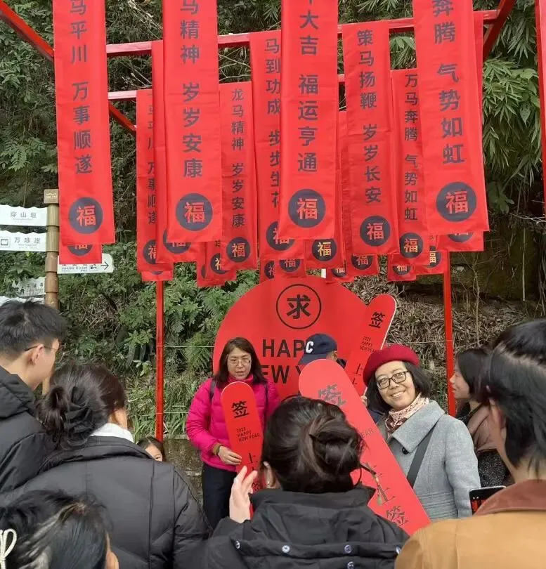 除了摇铃祈福,千佛寺下还设置了抽签祈福环节,成为本次活动的另一大亮点。游客们怀着虔诚之心,亲手抽取祈福签,解锁专属马年福运,每一支签都承载着景区的祝福。大家纷纷驻足品读签文、合影留念,将这份新春的好彩头珍藏于心。
