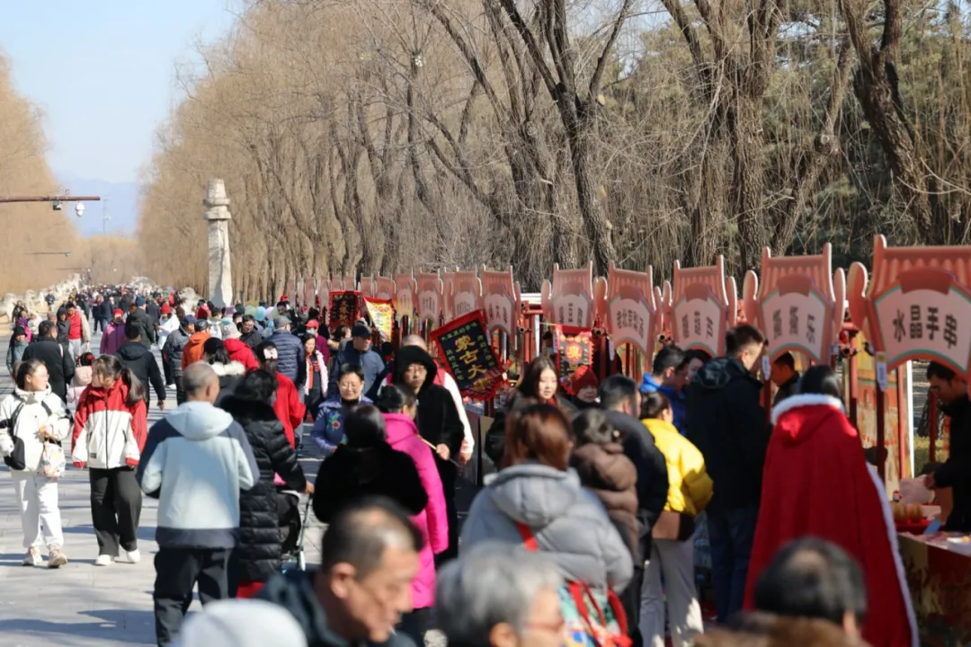 在明十三陵,一场穿越时空的“明潮狂欢季”火热上演。神路景区免票,汉服巡游、快闪舞蹈让游客仿佛置身大明风华;长陵、定陵、昭陵不仅有投壶、福字拓印等传统互动,更打造了热闹的大明新春吉市。银山塔林的登高祈福,则为新春增添了一份庄重的仪式感。