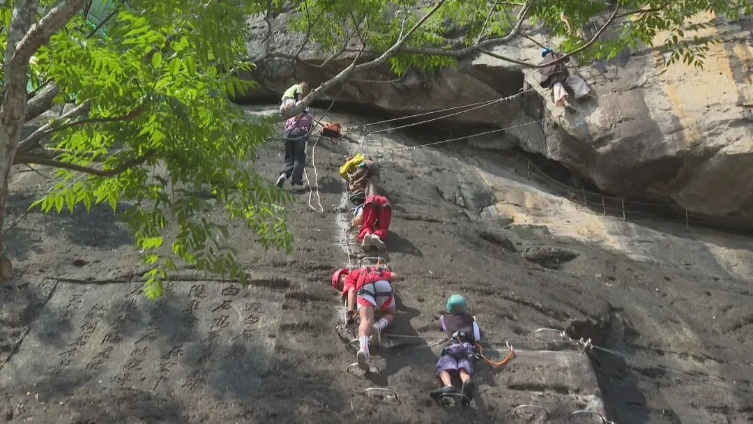 2月24日,记者在游客中心处看到,来自各地的游客结伴成群,有序购票入园。大家或是结伴徒步登山,在锻炼身体的同时欣赏风景;或是走走停停,体验游玩飞拉达、丛林穿越、玻璃观景台、玻璃滑道等有趣的游乐项目。