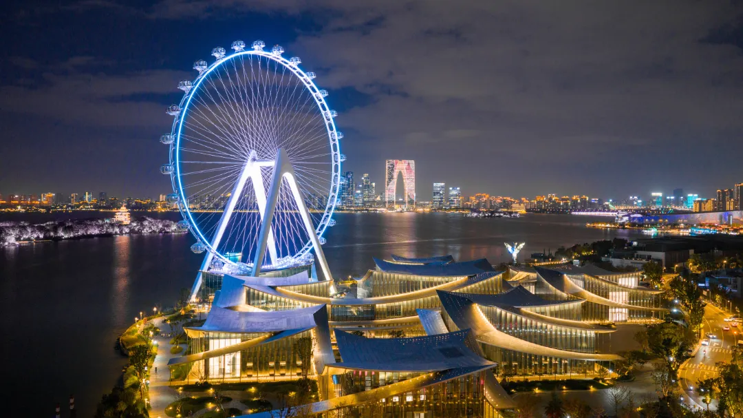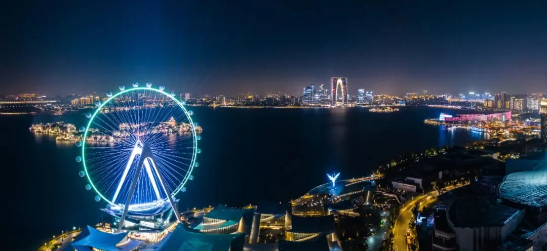 金鸡湖景区以其独特的城市湖滨魅力