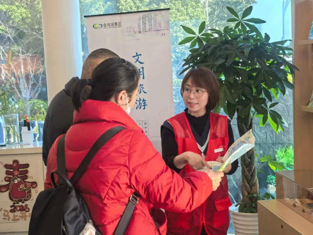 2026春节假期,金鸡湖景区管理中心联合属地企业、景区执法部门、应急救援等23家单位,通过政企联动体系全力保障景区运行平稳有序。环湖各码头、摩天轮等相关载体及文化场所、游客中心、驿站工作人员坚守一线窗口,以微笑服务迎接每一位市民游客。9天假期景区游客中心及金鸡驿累计服务游客超3.4万人次。金鸡湖小水滴志愿者在游船码头开展文明劝导、咨询引导等志愿服务时长总计25小时。蓝天救援队每日水域巡防、各属地一线安保人员齐齐在岗,为市民游客营造了安心、舒心的假日环境。