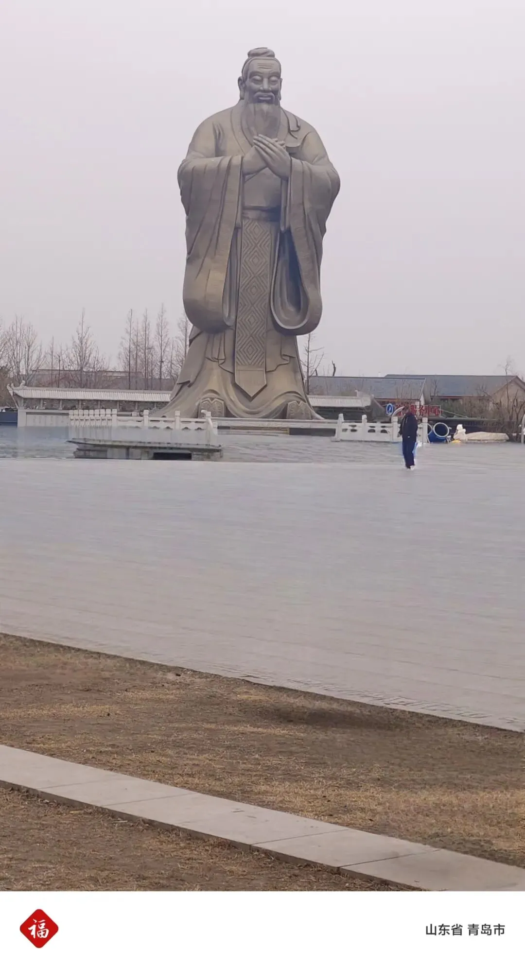 还有那座高大气派的巨型孔子雕像,衣袂飘飘,目光温和地望向远方,仿佛正将千年文脉,轻轻洒落在这片湿地之上。让人仰头凝望时总忍不住心生敬意。最让我印象深刻的是二十四孝桥,我还特意现场百度了一下,原来这座桥不光刻着经典的二十四孝故事,还融入了胶州本地孝女焦花的传说,这份专属这里的文化底蕴,让整座桥都多了层不一样的意义,一步一景都是故事,一砖一石都有着温情,漫步在这桥上,你赏的不仅仅只有眼前这满眼风景,更是在慢慢品读一座城市的温度和传承。