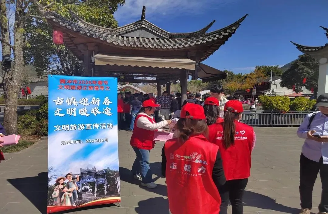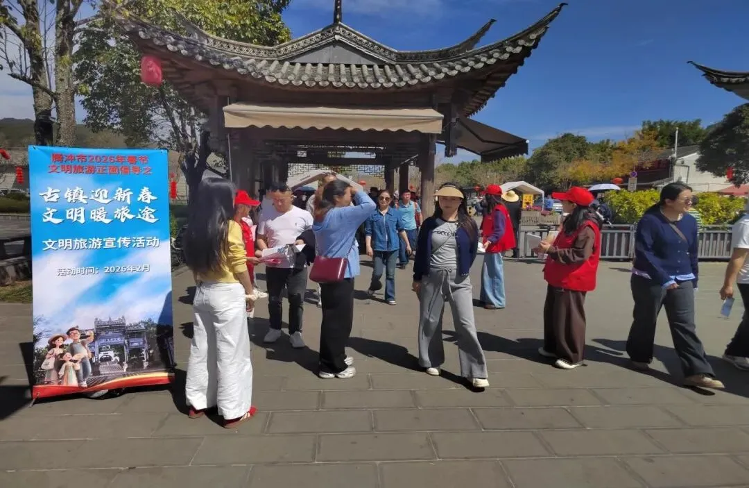 文明宣传融于年味,让理念深入人心。各景区立足自身特色,把文明旅游提示与腾冲新春场景深度结合:和顺古镇在青石板路、非遗市集旁立特色标识,火山热海在年味市集、温泉打卡点滚动播放公益宣传,北海湿地将文明指南与傈僳族民俗体验同步发放。线上线下联动发力,让文明出游理念融入非遗体验、温泉康养、民俗巡游的每一处,引导游客在感受腾冲特色年味中践行文明公约。
