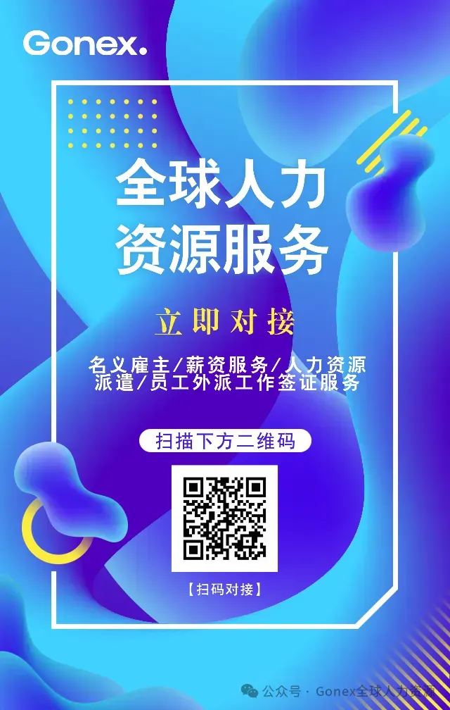 Gonex同时也支持全球大部分地区工作签证办理。了解更多Gonex工签服务有关信息,烦请扫描上方二维码,由资深人力资源团队为您详细介绍并解答。