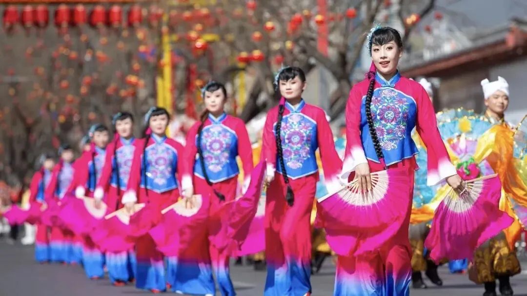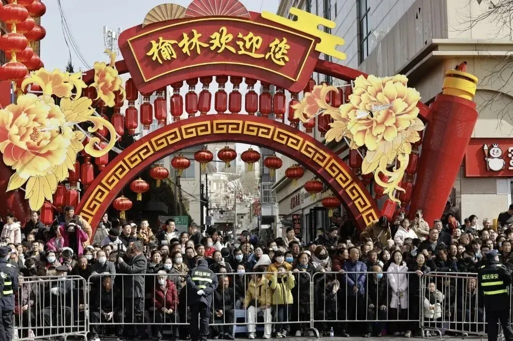 如果你选择在正月里走进榆林,就等于一头扎进了欢乐的海洋。从正月初一到十五,几乎每天都有来自全市12个县市区的秧歌队进城巡演。这可不是景区里那种定时定点、敷衍了事的表演,更不是一群人晃晃悠悠的散步游街——而是每个县最顶尖的“艺术家”们、最有朝气的年轻人们,用最质朴的热情和最精湛的技艺,为你献上的新春贺礼。那铿锵有力的腰鼓,那翻飞灵动的彩扇,那原生态的唢呐声,瞬间就能点燃你的血液。
