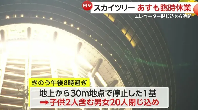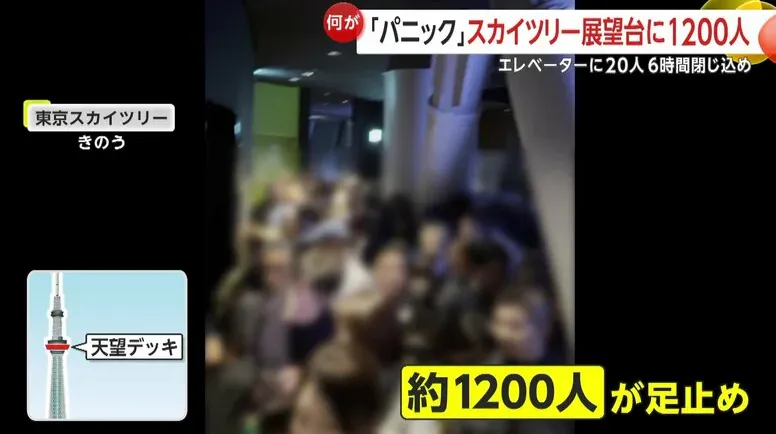 原来就在十几个小时前,这座日本第一高塔经历了一场长达6小时的突发事件——电梯骤停、急降、20名乘客被困高空、上千人滞留……