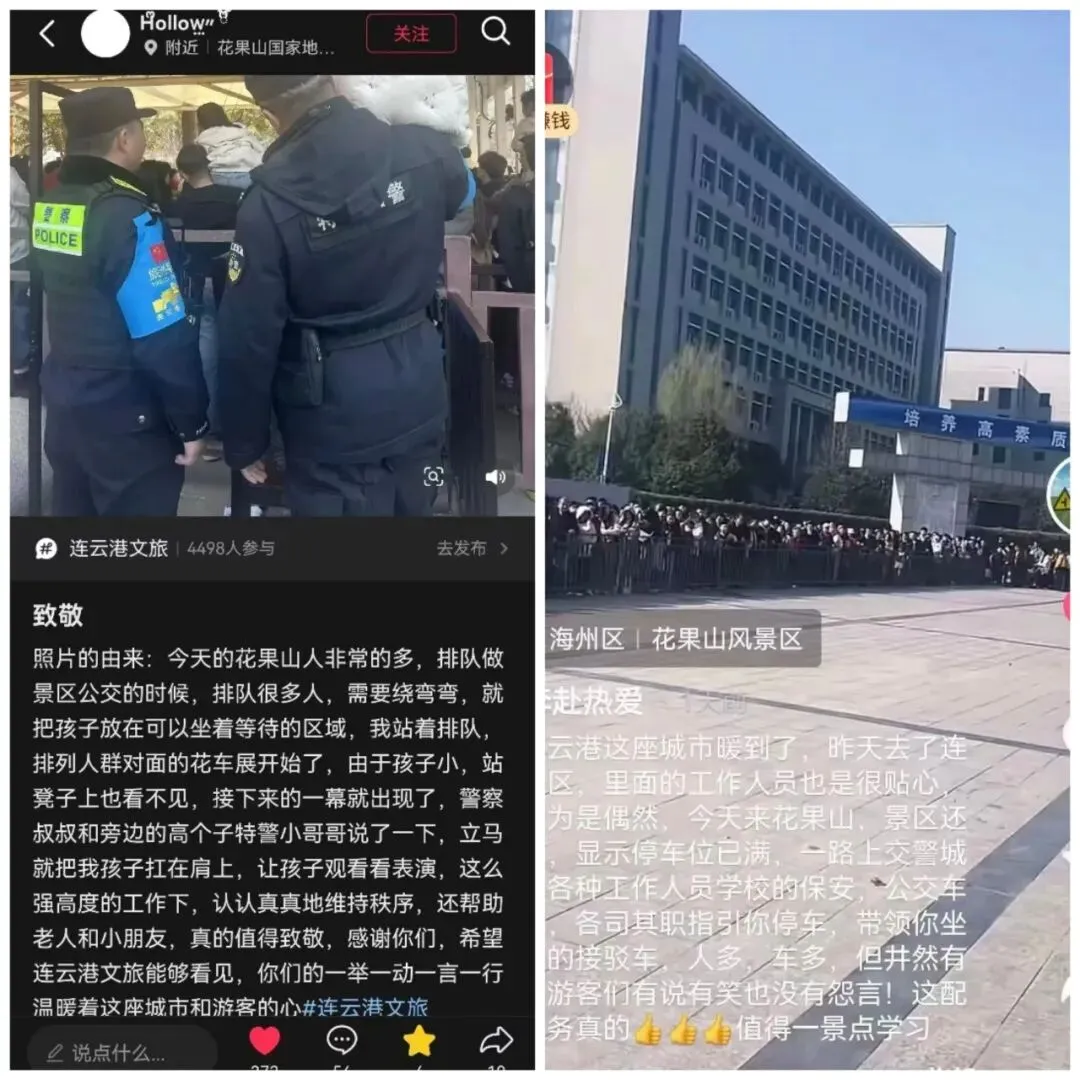 游人如织的背后,折射出景区的暖心服务。“等景交车时,花果山NPC给我们表演节目,真的很贴心!”“虽然人很多,但景区秩序井然!”“工作人员辛苦了,为他们点赞!”游客绽放的每一个笑容、竖起的每一个大拇指、说出的每一句暖心好评,都是对景区服务的肯定。