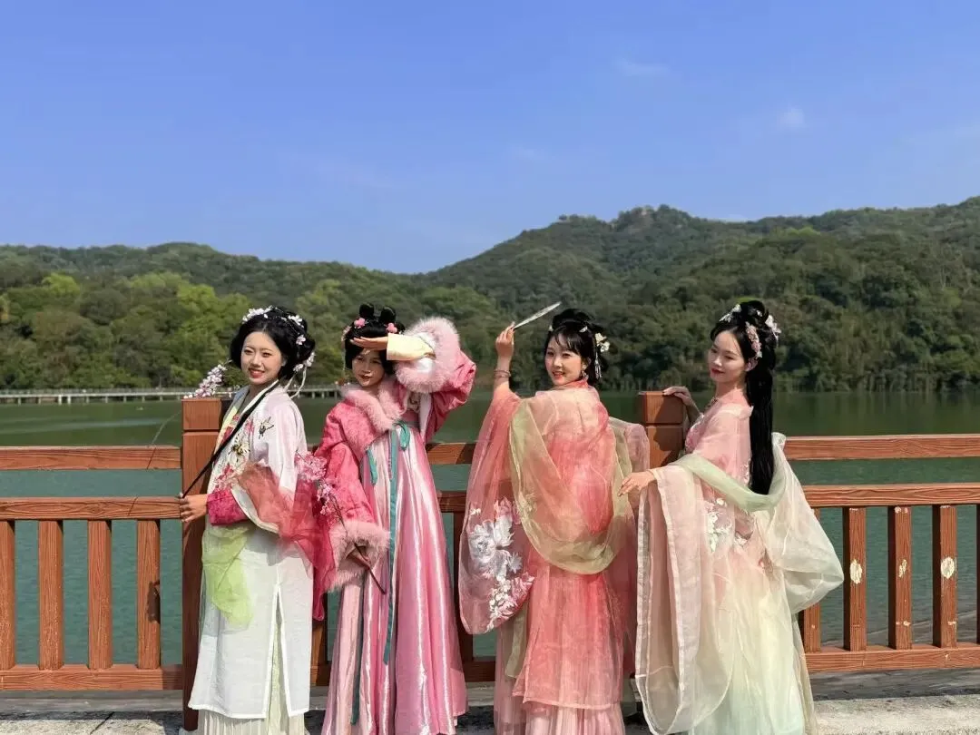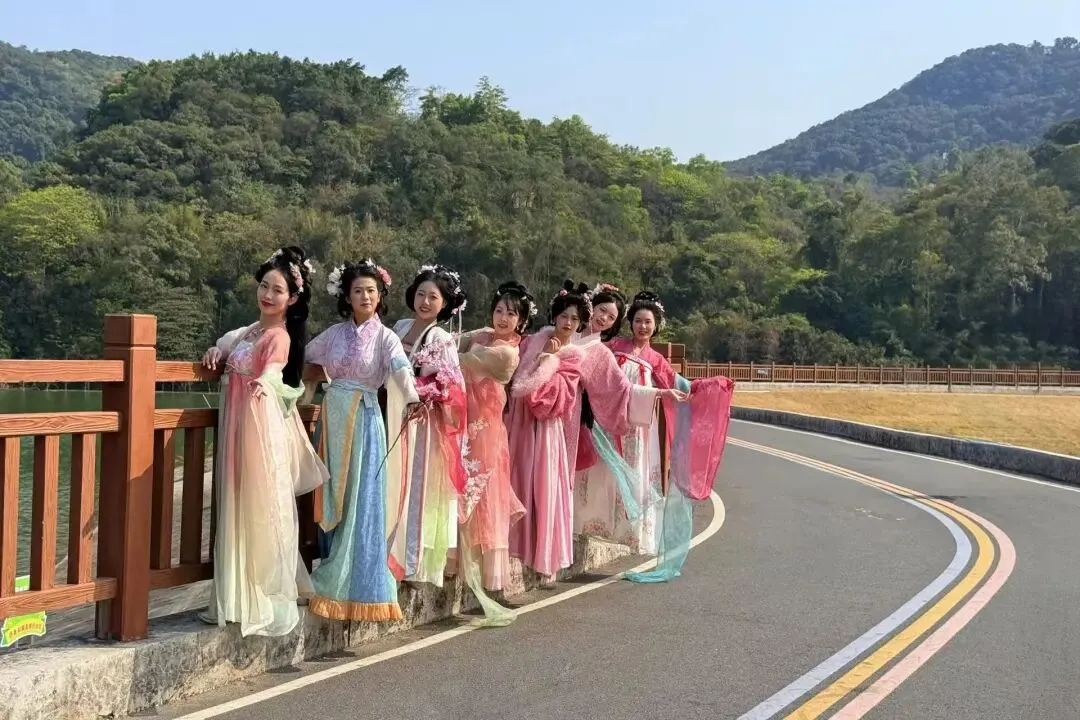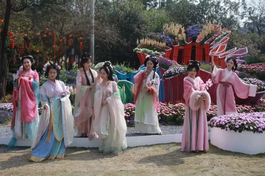 仙女们漫步于明珠女草坪“大湾鸡”前、蒲林广场立体花坛边、桃花涧、黄婆洞水库“一路生花”网红打卡点,衣袂翩然、浅笑嫣然,与春意盎然的美景相映成趣,一步一景,皆成画卷。