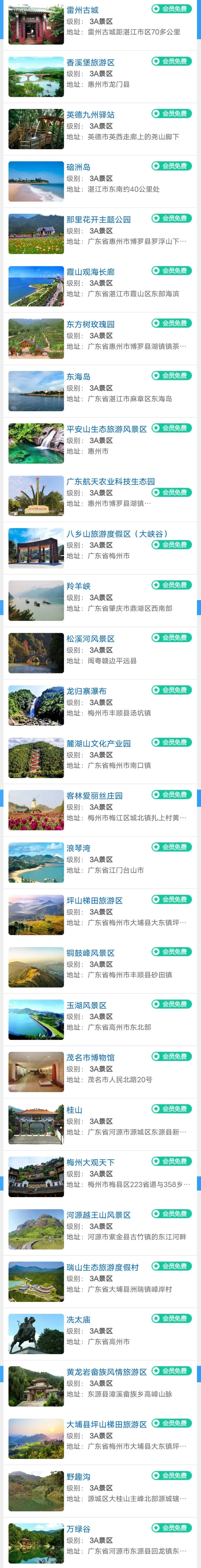 点击直接购买 关注公众号了解详情 全国旅游年卡之 广东旅游年卡景区目录