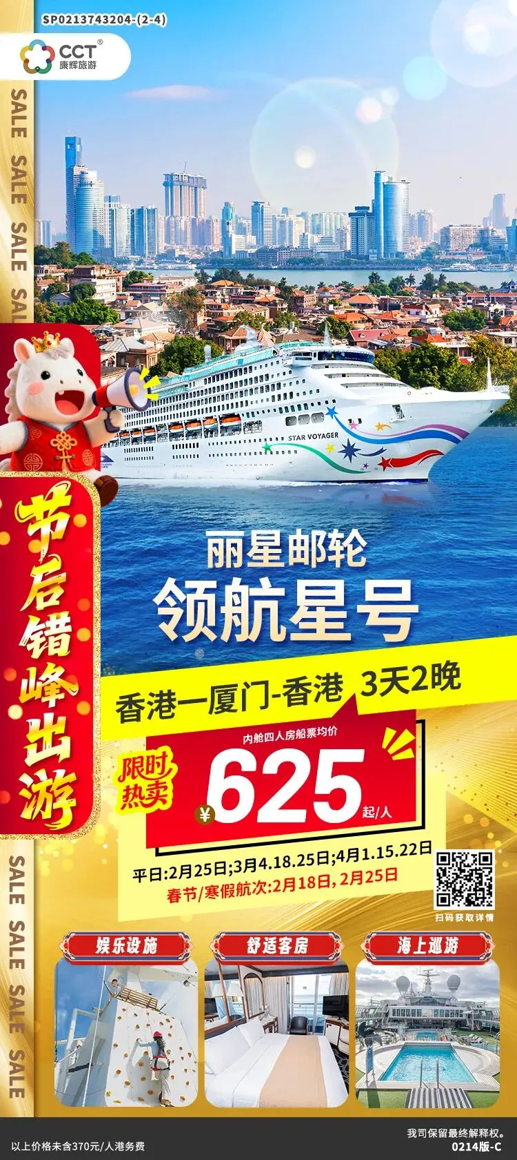 节后错峰,邮轮当选!不用挤景点,不用赶高铁,625元起坐邮轮,把大海和春光都包场!