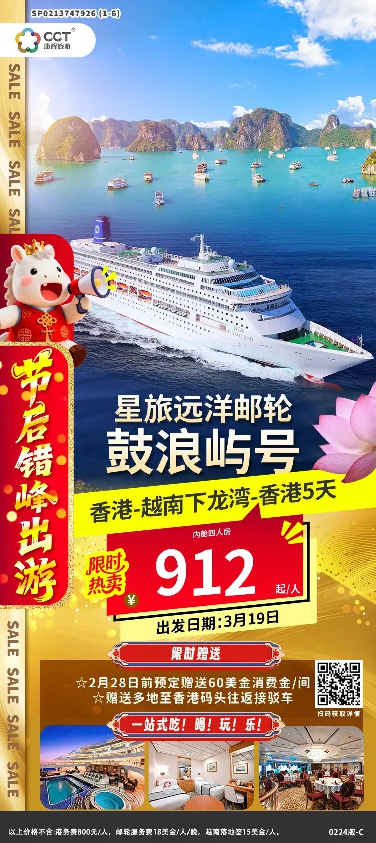 ✅ 星旅远洋邮轮·鼓浪屿号|香港-越南下龙湾-香港5天