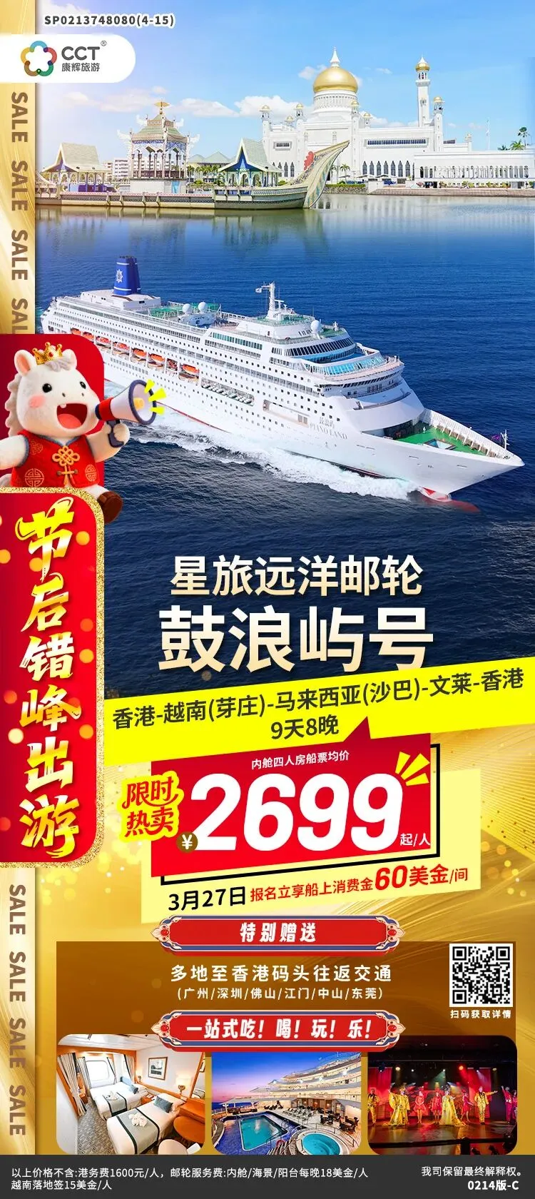✅ 星旅远洋邮轮·鼓浪屿号|香港-越南(芽庄)-马来西亚(沙巴)-文莱-香港9天
