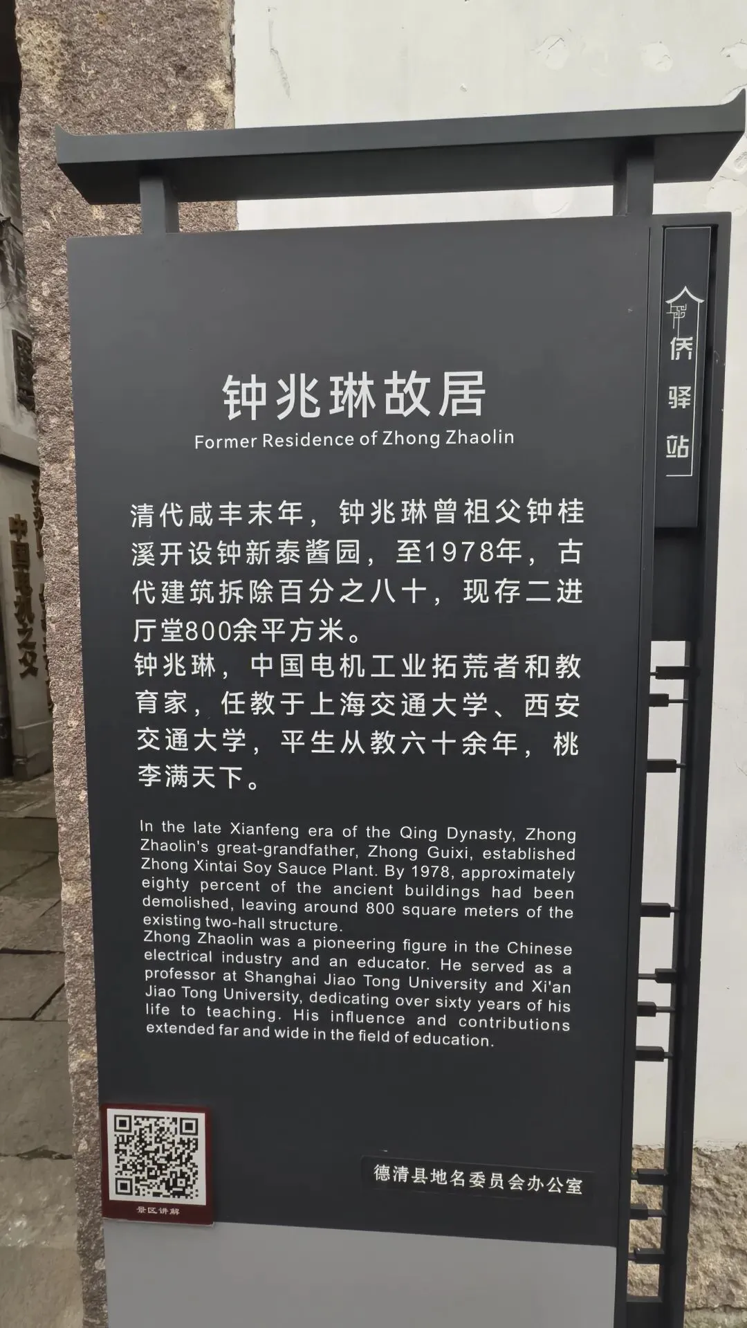 3.钟兆琳故居:钟兆琳(1901-1990)是中国近代电机工程奠基人,曾指导研制中国首台交流发电机与电动机,培养钱学森等20余位院士。故居始建于清咸丰年间,为江南传统木质结构建筑,建筑面积约650平方米,是钟兆琳教授的祖居。故居内陈列其手稿、奖章、旧桌椅等遗物,并展示其生平事迹。