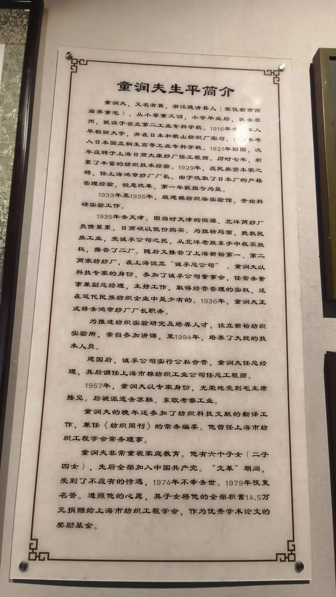 5.童润夫纪念馆:是木结构的两层楼,古朴典雅,简洁大方,和老街风格一致,里面有童润夫先生的介绍、照片,以及他用过的物品等。 童润夫,1896年4月出生于浙江省德清县,是中国近代民族纺织工业先驱之一,也是一位爱国纺织科技专家。童老先生创造了举世瞩目的纺织工业科技财富,推动了民族工业的发展。