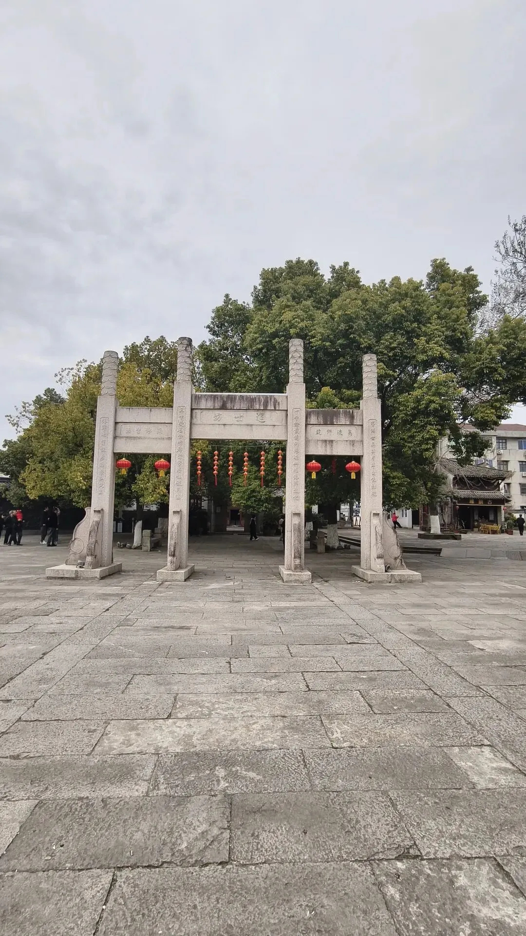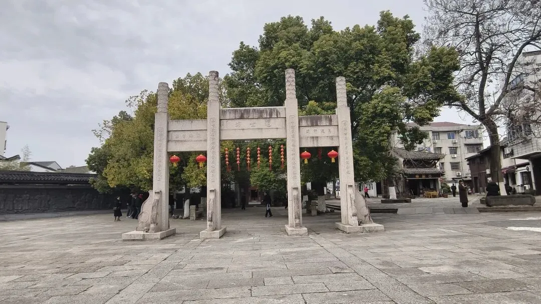 7.进士坊:是为纪念古镇历史上涌现出的进士而建,是当地文脉昌盛的重要象征。它是一座四柱冲天式的牌坊,造型古朴庄重,虽部分资料提及为“新建”,但其设计仍遵循传统形制,具有浓厚的历史氛围。该坊并非为单一人物而立,而是纪念新市古镇历史上共34位进士,彰显了此地“人杰地灵、文风鼎盛”的传统。