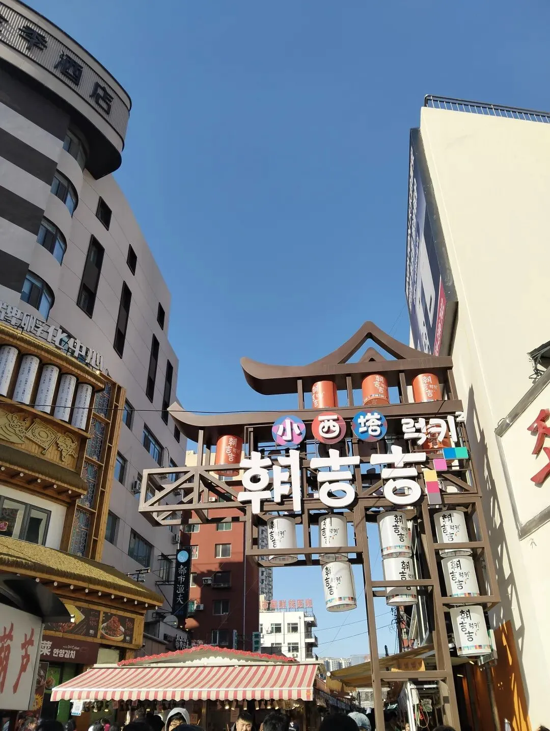 整条街瞬间被朝鲜族风情包裹。沿街的韩文招牌、朝鲜族传统屋檐、空气里弥漫着辣白菜的鲜酸、烤肉的焦香、打糕的甜糯,每一步都像踩进韩剧场景里。
