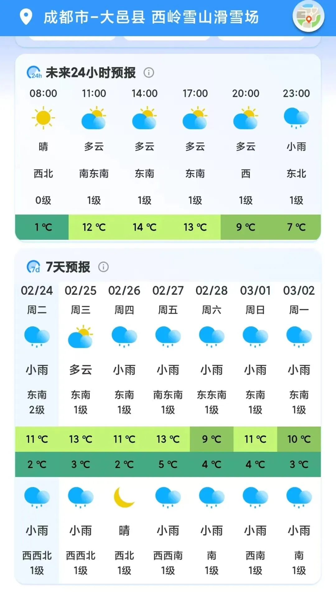 西岭雪山景区2月25日(初九)气象预报