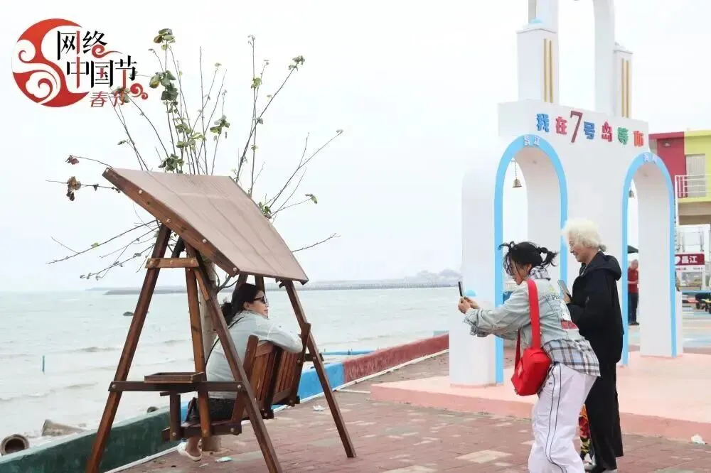 游客在海岛7号公路“千寻之梦”打卡拍照