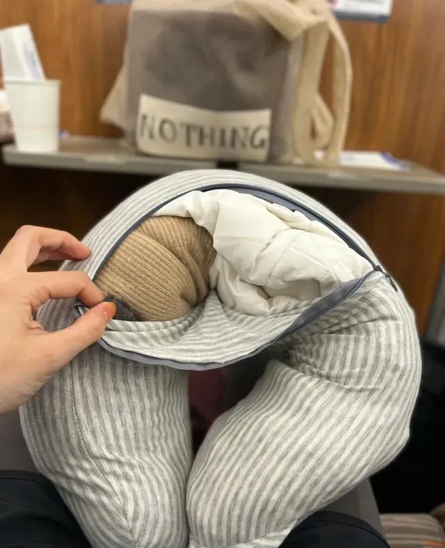 其实聪明点,空颈枕套+毛衣针织衣服一塞,瞬间变一个自制颈枕,舒服不输买的,还能多腾出不少空间哦!