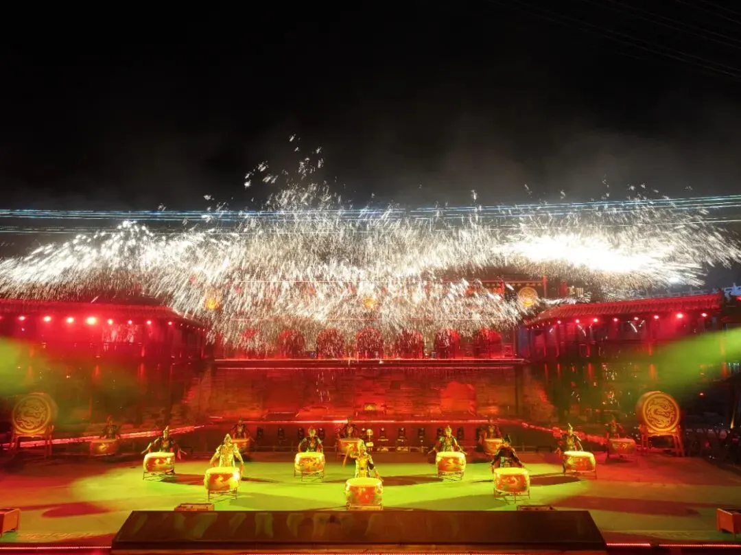 🔥 铁火史诗,视觉震撼拉满大型铁火实景史诗剧《李世民东征》是今年的王牌亮点。剧目以真实历史为背景,融合非遗打铁花、威亚天马、杂技演艺,火刀、火扇、火剑在夜空中划出绚丽轨迹,将盛唐雄风演绎得淋漓尽致。