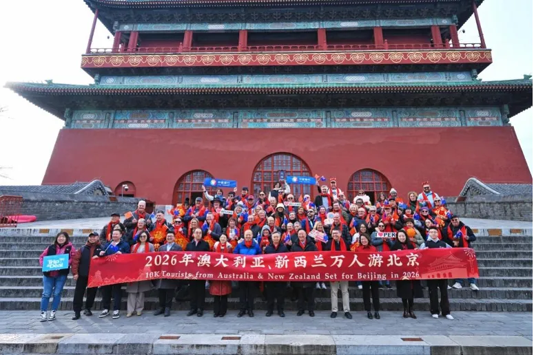 2月20日,“2026年澳大利亚、新西兰万人游北京首发团”欢迎仪式在鼓楼举行,首批60名澳新游客感受到了中国春节的浓浓年味。此次活动由中旅入境策划,采用分批来京形式,将一直持续至今年年底。中旅旅行还紧抓免签入境政策利好,在伦敦希思罗机场为赴华旅客举行新春送行仪式,航班抵达北京首都国际机场后,再为旅客送上新春大礼包,以全流程“送迎联动”推动中英文旅交流再升级。