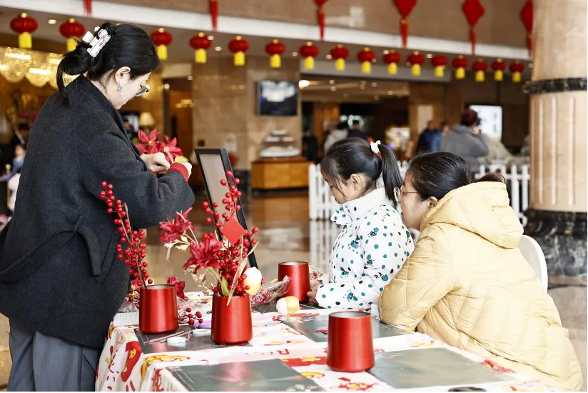 中旅酒店聚焦“家庭出游+休闲度假”核心客群,开展精细化收益管理,组建假期收益调度专班,实行每日动态数据监测与策略调整,全面提升假期经营质效。直营酒店营收同比提升15%,平均出租率提升8%。旗下酒店深入挖掘文化特色,将醒狮表演、财神巡游等传统年俗和剪纸、脸谱彩绘等非遗手作融入酒店服务场景,打造沉浸式新春氛围,在提升经营效益的同时,进一步增强宾客体验感与满意度。