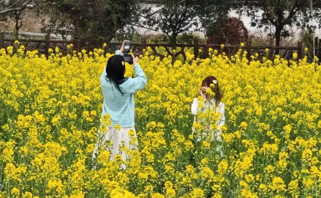 ✅深坡油菜花铺满田野,游客画中行;