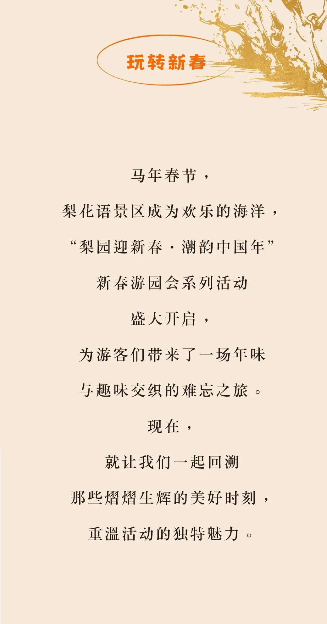 您现在的位置是:首页 > 国内旅游目的推荐 > 正文 国内旅游目的推荐 梨园春色暖·潮韵中国年|梨花语景区2026新春游园会「圆满收官」 admin2026年02月24日 22:19:16国内旅游目的推荐7 梨园春色暖·潮韵中国年|梨花语景区2026新春游园会「圆满收官」活动视频♥ 已关注 关注 重播 分享 赞 视频详情 活动视频♥ 已关注 关注 重播 分享 赞 视频详情 活动视频♥ 已关注 关注 重播 分享 赞 视频详情 活动视频♥ 已关注 关注 重播 分享 赞 视频详情 ..............The End .............编辑:邢啸天初审:周艾国终审:惠泓瀚 转载请说明来源于"旅荐网",部分内容转载自网络,如有侵权请联系qlwl@foxmail.com删除 本文地址:https://www.15386.cn/post/122531.html 上一篇 954.37万!景区人气翻番!天津春节的顶流密码在这里! 下一篇 旅游出发前几天是最迷人的时段. 相关文章 《呼伦贝尔市“十五五”文化和旅游发展规划》编制调研组一行莅临鄂温克族自治旗开展前期调研工作 当我一个人在大连旅行3天3晚花了319r(攻略 带家人去云南旅游费心费力?这份轻松不累的私人定制游攻略,让全家老小都玩嗨了!! 新鲜出炉!敦煌游玩攻略拿走不谢! 青海七日游优选路线,纯玩跟团+旅游指南,沉浸式体验青海 出游不“踩坑”,旅游“避坑”指南,请查收! 甘肃七日游优选路线|纯玩跟团+旅游指南,沉浸式解锁丝路底蕴 top50旅游城市:拉萨三日精华路线全攻略 2026广西研学 | 北海研学旅行,北海茉梭音乐节全攻略|赴海听乐,解锁吃喝玩乐→ 千年古犍为·周末打来回丨3月最后一个周末旅游指南→ 发表评论 取消回复 评论列表 这篇文章还没有收到评论,赶紧来抢沙发吧~