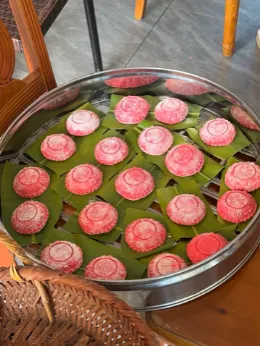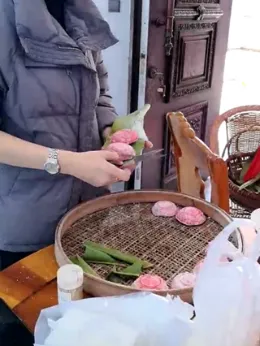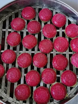 红团作为莆田传统美食,在年夜饭餐桌上是必不可少的一道菜。在奶奶的指导下,官雨欣同学从揉面开始反复摸索,她不断调整糯米粉与红曲粉的比例,终于揉出“手光、盆光、面光”的面团。她小心包制软糯绿豆馅,用“囍”字木模按压成型,让红团承载起马年一马当先、事事顺遂的美好期许。