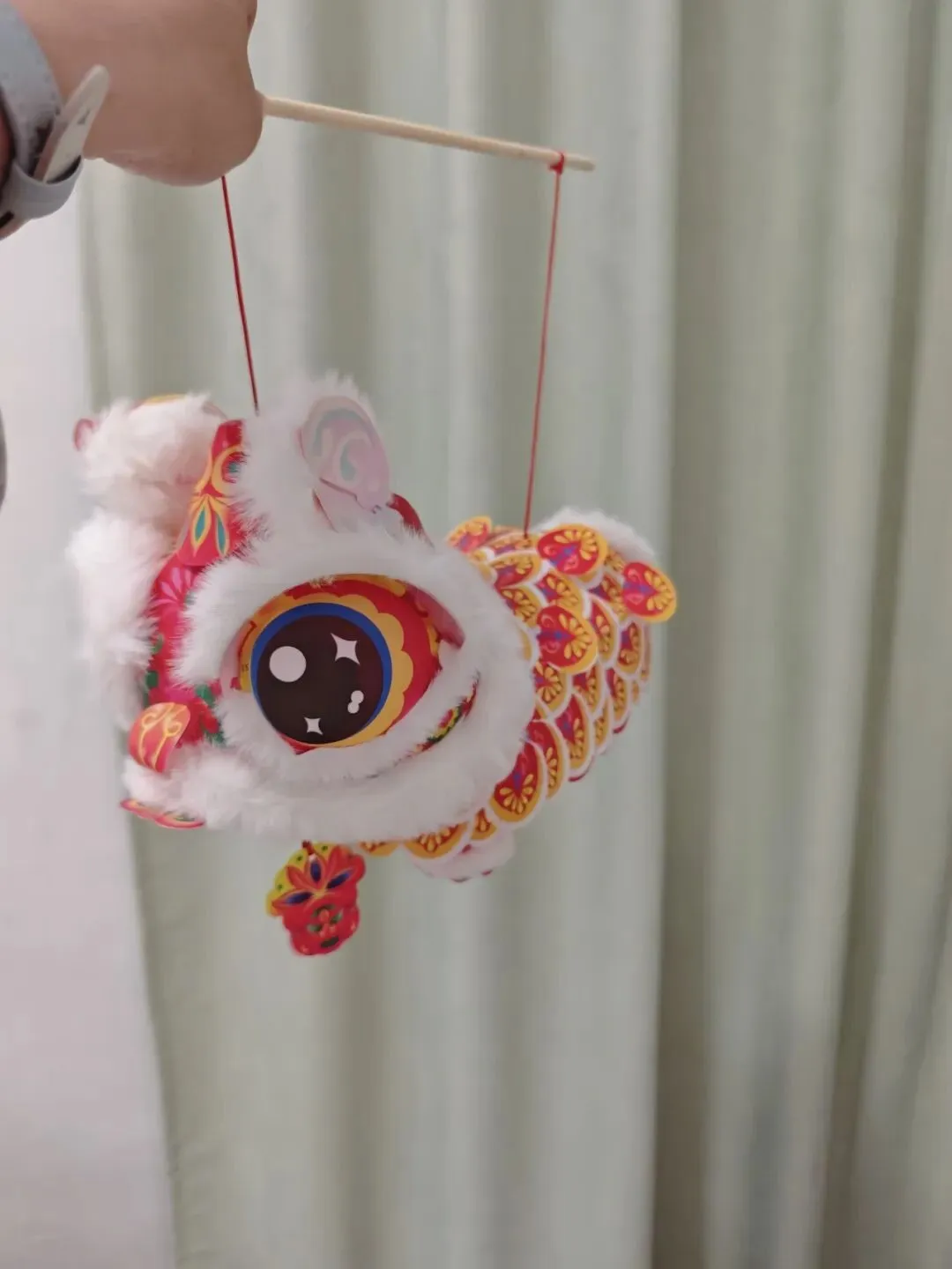 从裁剪鳞片、粘贴毛绒,到安装灯串、固定提杆,每一步都细致打磨。起初因鳞片对齐不准、毛绒粘贴褶皱影响美观,他放慢节奏用铅笔做标记,反复调整让醒狮造型饱满生动。他为灯笼点缀祥云铜钱,让暖光灯笼成为传递马年吉祥、祖国昌盛的美好载体。