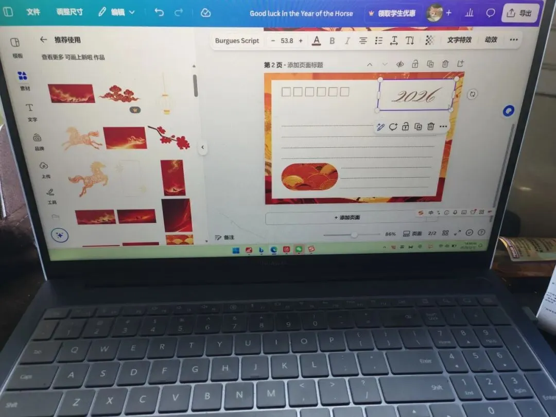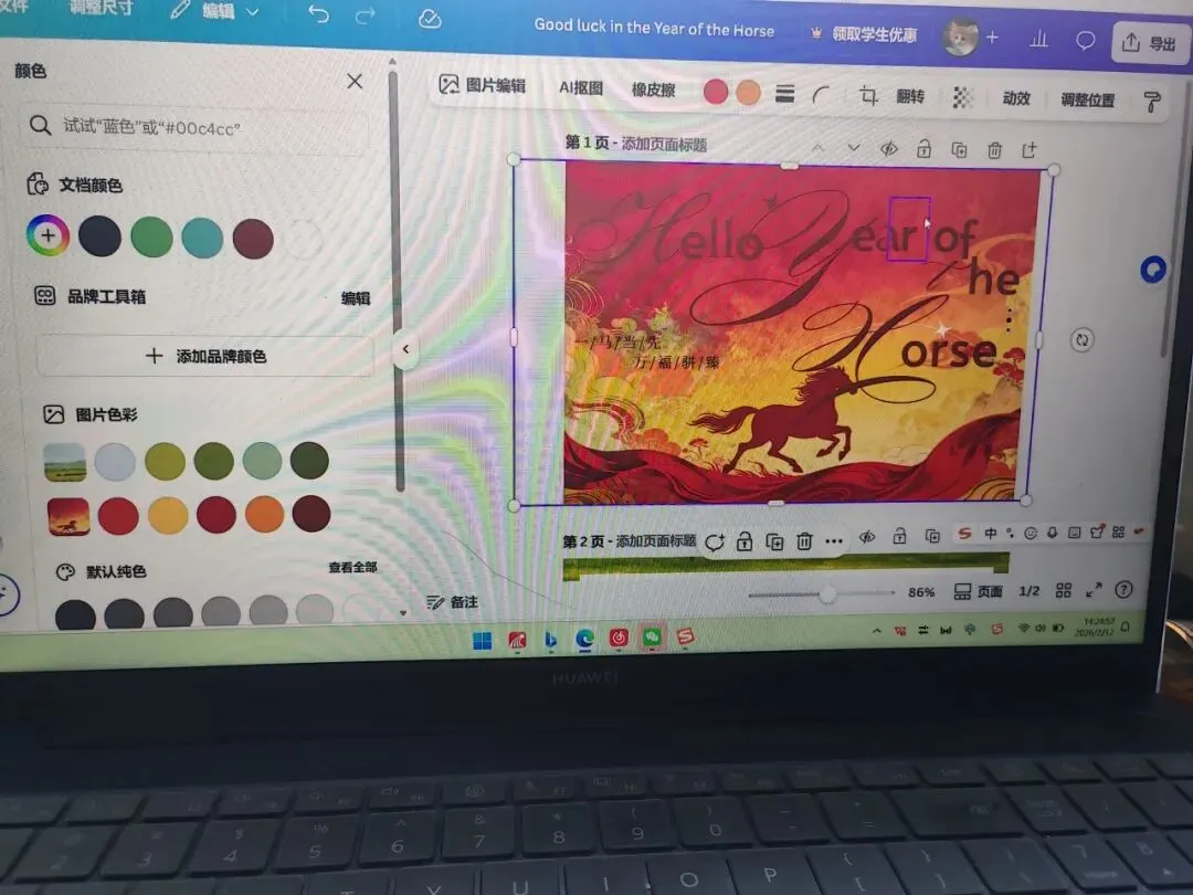 以传统为基,同学们将马年主题与现代创意结合,以海报、灯笼、明信片为载体,让传统民俗与青春创意碰撞,诠释别样新春年味。