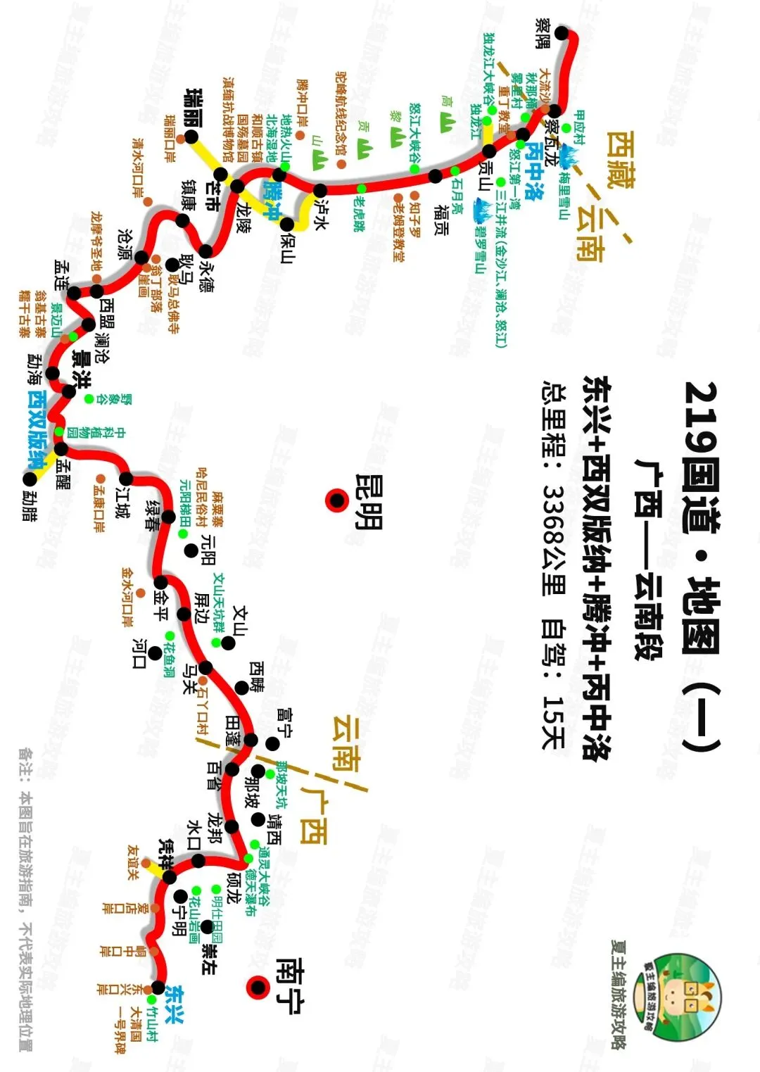 行程安排:昆明→保山→瑞丽→泸水→贡山→丙中洛→德钦→香格里拉→丽江→昆明。