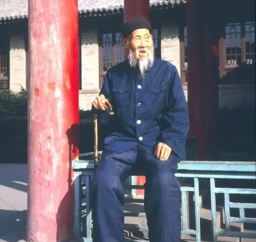 这个穿在老人身上的叫蓝粗布对襟褂子,布料结实,扣子大而白,衣摆垂得直直的,袖口磨得发亮,一根柺杖握在掌里,指背的青筋像老槐树根,老人说这身行头耐脏耐穿,过日子嘛,图个实在,现在呢,衣服一季一换,颜色花得眼晕,还真难找这种沉静的蓝了。