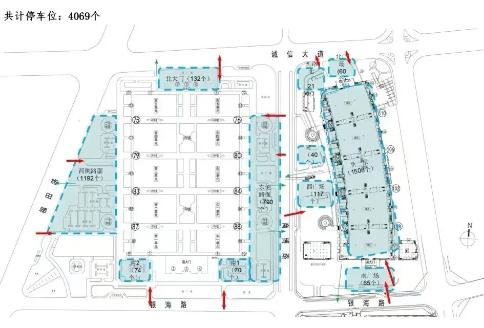 周边共4069个停车位,建议停车至义乌国际商贸城五区地面、地下室及义乌国际商贸城四区地面停车场。此外,请配合现场工作人员维护现场秩序。