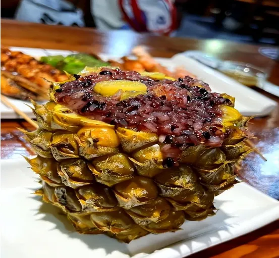 菠萝饭是把热带的甜香装进菠萝里的美味。糯米吸满了菠萝的甜香,颗粒分明又软糯,每一口都能吃到菠萝的颗粒感,甜而不腻,还带着淡淡的果香。捧着菠萝壳吃,连米饭都沾了热带的浪漫,吃完连手上都留着菠萝的清香。