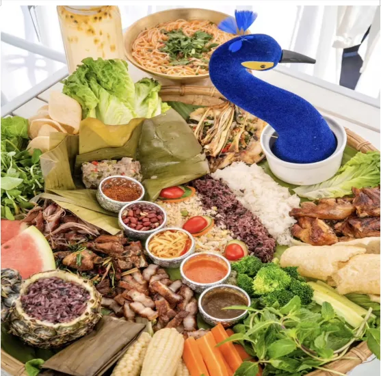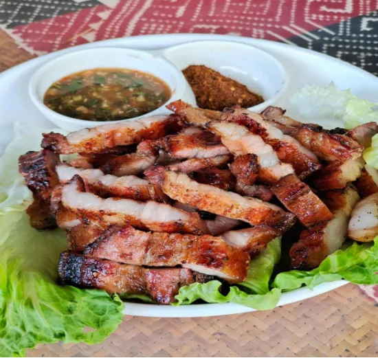 吃的时候不用筷子,直接用手抓着糯米饭,裹上一块烤肉或一口凉拌菜,糯米饭的香、烤肉的油香、凉拌菜的酸辣融合在一起,一口下去超满足。