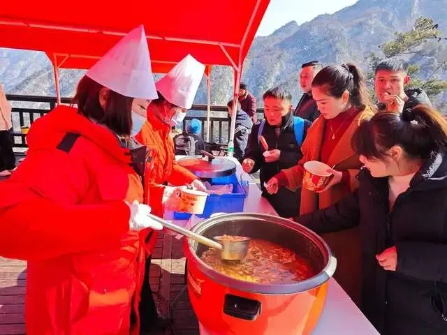 为让游客尽享新春乐趣,景区精心打造了四大核心体验。云中花园新春游园会红灯笼、春联挂满枝头,投壶射箭、摇骰子、五子棋对弈等传统游艺热闹非凡,小丑模仿秀等节目精彩纷呈,围炉煮茶、特色美食同步上线。“老子”NPC现身长江黄河流域分水岭,与游客趣味对话并赠送定制祈福牌,让巍峨山岭见证马年新愿。海拔千米之上,景区用地道的免费南阳胡辣汤,为游客驱散寒意,用细节里的温情让游客倍感暖心。1830 云顶咖啡、云端飞拉达等特色体验更是备受追捧。