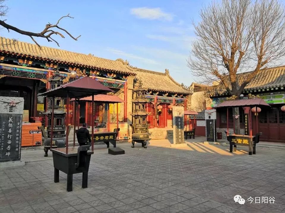 阳谷文庙,是一座见证了阳谷千年历史兴衰的庙宇,位于县城西南隅,紫石街北侧,景阳冈酒厂家属院。阳谷文庙初建于宋代,后多次重修扩建,形成了一个规模可观的宫殿式古建筑群。阳谷文庙中心建筑大成殿用于供奉孔子,整个大成殿气象雄伟,装饰大方,给人以庄严宏大之感。大成殿前有东西两庑各九间,木构架,青砖砌成,歇山式,灰瓦覆顶,院内植有松柏。 张秋陈家旧宅位于阳谷县张秋镇北街,山东省文物保护单位。陈家旧宅坐东朝西,原占地约30亩。始建于清康熙二年(1665年),原来有一座青砖绿瓦的宏伟门楼,另北侧有店铺三间,南侧是奴仆骡马、车辆出入之门,进门楼后是一个水磨青砖层叠砌的迎门墙。墙后面便是一座雕梁画栋,飞檐斗拱,宽敞明亮的会客厅。两侧各两间小而典雅的茶房。茶房后有一角门,紧连着厅后三间瓦房,便是主人的书房。称之为前院。客厅后又一门楼,入内正中有二层阁楼。两侧各有厢房三间。此院为后院。