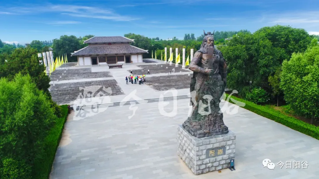 宋仁宗年间(公元1023年),阳谷县人口兴旺,买卖繁荣,店铺林立,在阳谷城西街隅首上,有一中药铺。店主叫赵润春,膝下无儿,只有一女名为秀姑。父女经营药铺,童叟无欺买卖昌顺。当地恶霸西门庆看上秀姑美色,派人杀害了赵润春,霸占了药铺和秀姑。成亲之夜,秀姑为报杀父之仇,灌醉西门庆,关在屋里,点火烧屋,然后自杀,可是西门庆未被烧死,而西花园鸳鸯阁却化为灰烬。 为镇邪压惊西门庆听从风水先生建议,盖起了狮子楼,楼前雕刻了一对红眼披鬓、呲牙咧嘴的石狮子。后来武松为兄报仇在此斗杀西门庆,遂使狮子楼名扬四海尽人皆知。1999年4月19日,狮子楼被聊城市人民政府公布为第一批市级文物保护单位。狮子楼景区以《水浒传》《金瓶梅》故事为背景的主题景区,武大郎与潘金莲的形象受到游客的普遍欢迎,成为景区最大的亮点。景阳冈旅游景区位于山东省聊城市阳谷县县城东(偏南)16公里张秋镇境内,传说为《水浒传》中描述的武松打虎处,总占地面积33.3公顷。 景区内沙丘起伏,杂草丛生,林荫蔽日,一派荒野景象。其主要景点有三碗不过冈酒店、乡民告示处、县衙告示处、山神庙、武松打虎处、石碑、虎啸亭、武松庙、湖心岛、钓鱼台、碑林、虎池、猴山、鹿苑、古箭场等20余处。 景阳冈旅游景区于2010年被评为国家4A级景区,是水浒传旅游线上的重要景点。《阳谷县志》载:景阳冈在县城东40里,沙丘起伏,莽草无涯,古木参天,人烟稀少。景阳冈附近,原有9岭18堌堆(高大险峻的巨型土山),景阳冈即在东沙堌堆和西沙堌堆之间。随着历史变迁,如今的景阳冈已变成一片缓起的沙冈。冈上古柏林立,国槐森然,观之亦颇威严。冈右侧立有一幢石碑,上刻“景阳冈”3个大字,系我国著名书法家、时任山东省委书记舒同于1958年所题。沙冈顶部正中,是由一株株墨绿婆娑的国槐护卫着的民族式建筑的庙宇,俗称“武松庙”。该庙3间起脊,单檐带廊,青砖灰瓦,朱门红窗,古朴典雅。据考证,该庙始建于明代中叶,距今已有500余年的历史了,系山东省重点文物保护单位。1958年,庙东二、三百米处,在景阳冈村出土石碑一块,上镌有“武松打虎处”,现已移至景阳冈旅游区内,由于时代久远,碑阴大部分字迹已模糊不清,有极个别字迹尚可辨认。据考证,该碑立于北宋末年或南宋初期,景阳冈村中石碑原处才是武松打死老虎的地方。1973年以来,经省考古队多次试掘,认定景阳冈为“龙山文化”遗址。 该遗址现分为南北2冈,中间是一条公路。南冈东西长86米、南北宽75米,面积约6450平方米。北冈东西长24米、南北宽47米,面积约1128平方米,冈顶较平,高出四周地面约4米。遗址文化内涵较为丰富。 从断崖观察,北冈文化层厚约2.5米,南冈约2米,还暴露有灰坑。从采集的标本看,以泥质陶为主,夹沙陶次之;陶色以灰陶为主, 其次为黑陶、红陶。纹饰有绳纹、篮纹、方格 纹、弦纹,叶脉纹等。可识器形有鼎、瓮、器 盖等,还采集有石镞、石凿、骨凿。1978 年,被定为省级重点文物保护单位。在江北水城、运河古都聊城的东南部,英雄故里,东夷之都阳谷县的东北部,有一个名叫阿城的古镇,京杭大运河穿城而过。明清之际,由于漕运发达,这里曾是历史上著名的港口城市,号称“运河文化项链上的璀璨明珠”、“华北五大寺院”之一的著名佛教寺院——海会寺就坐落在这个镇上。海会寺的建立,与京杭运河有着难解之缘。据寺碑记载,清康熙四十八年,东阿海会庵僧人隆性法师从金陵募造三尊大佛,用大船沿京杭运河北上,至阿城镇,船竟停泊不前,动用数百人也无法拉动。隆性法师与当信众认为,这是佛祖显灵,要安居于此,于是便将大佛请下舟船,安奉于镇上的财神庙内。