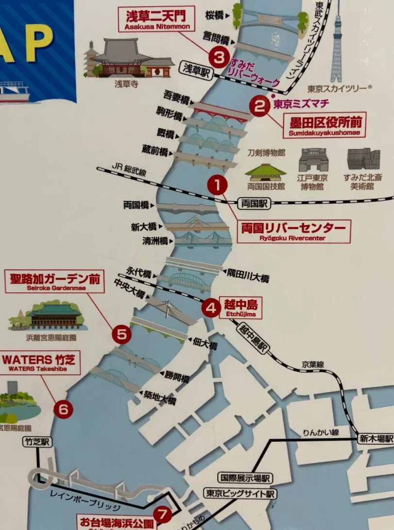 海上主题公园-京门大桥-彩虹桥-隅田川-晴海码头-筑地-丰州市场-羽田机场