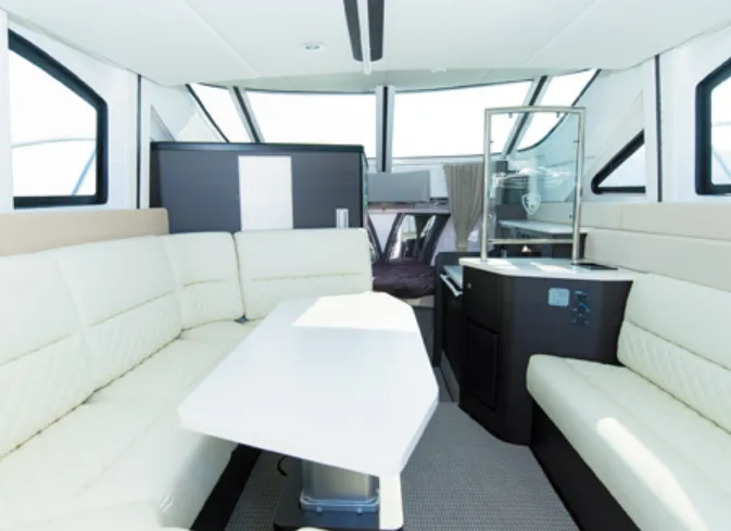 开船的畅快感、两台300马力发动机提供的出色加速性能和驾驶感,安全、平稳、不颠簸,以及给人与大海亲和感的创新甲板布局,让我们感受到全新的海洋场景。