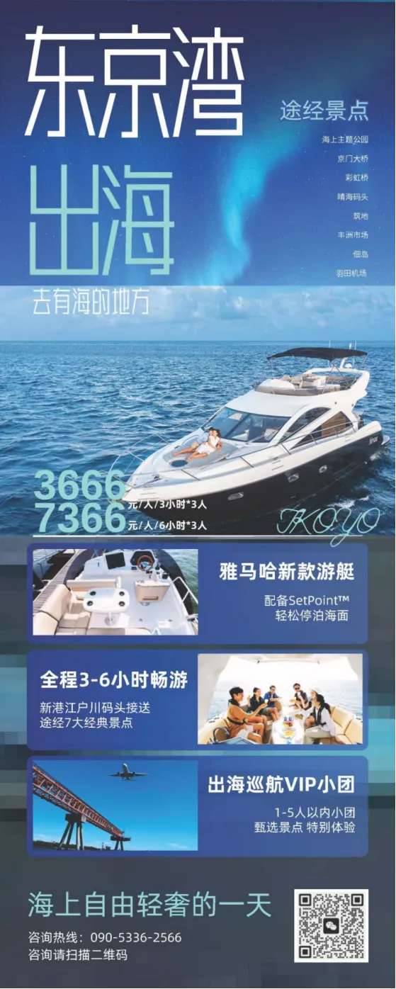 NO.1240.日本旅游关东地区之东京雅马哈轻奢游艇出海巡航VIP中文1-5人小团