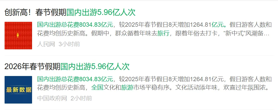 全国旅游第一大省,彻底爆了前几天,咱们提到“反向过年”热潮兴起。 什么程度呢? 据文化和旅游部数据中心测算,今年的春节小长假,游客人数和花费均创历史新高: 全国国内出游5.96亿人次,总花费8034.83亿元。