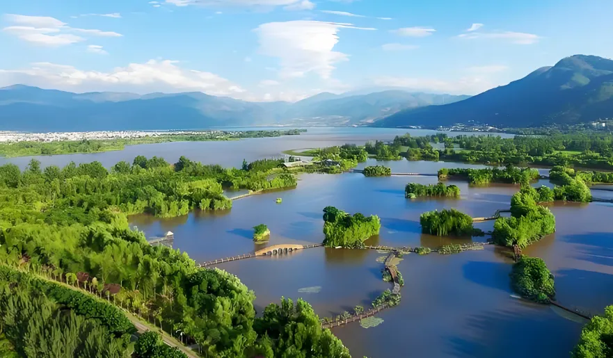 第七站:仙海水利风景区被称为“绵阳的后花园”,水面宽阔,岛屿众多。2026年新开了环湖绿道,租个自行车骑行特别舒服,还有那种透明的玻璃船,拍照绝美。门票免费,但坐船要钱,大船30元,快艇80元。