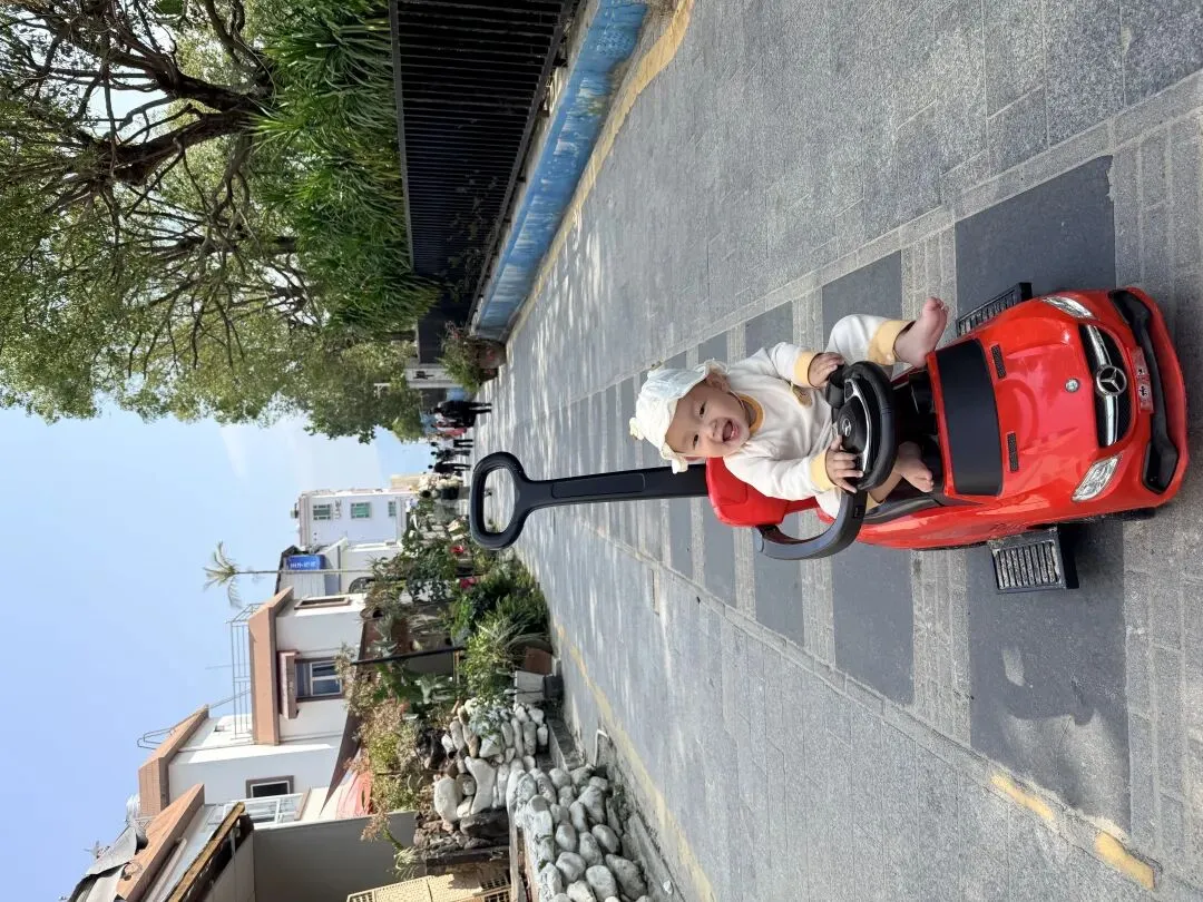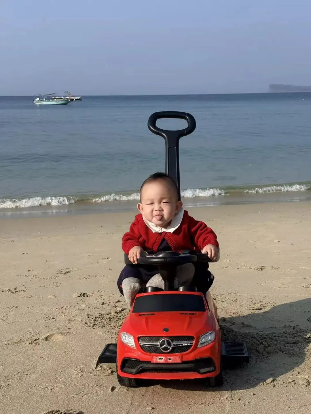 我笑了笑,想起这三天:宝宝按时喝奶、按时睡觉,生活规律一点没乱,却照样看了海、踩了沙、吹了海风;我们在景区和酒店之间从容切换,没有手忙脚乱,没有崩溃大哭,只有满满的回忆。