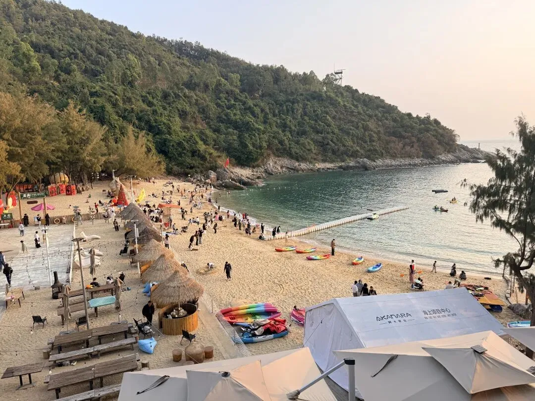 较尾场的沙滩小,人多,但适合玩水。逛了一圈,宝宝困了,赶紧回酒店睡觉——我们的酒店离景区都只有十分钟车程,完美契合宝宝的作息。