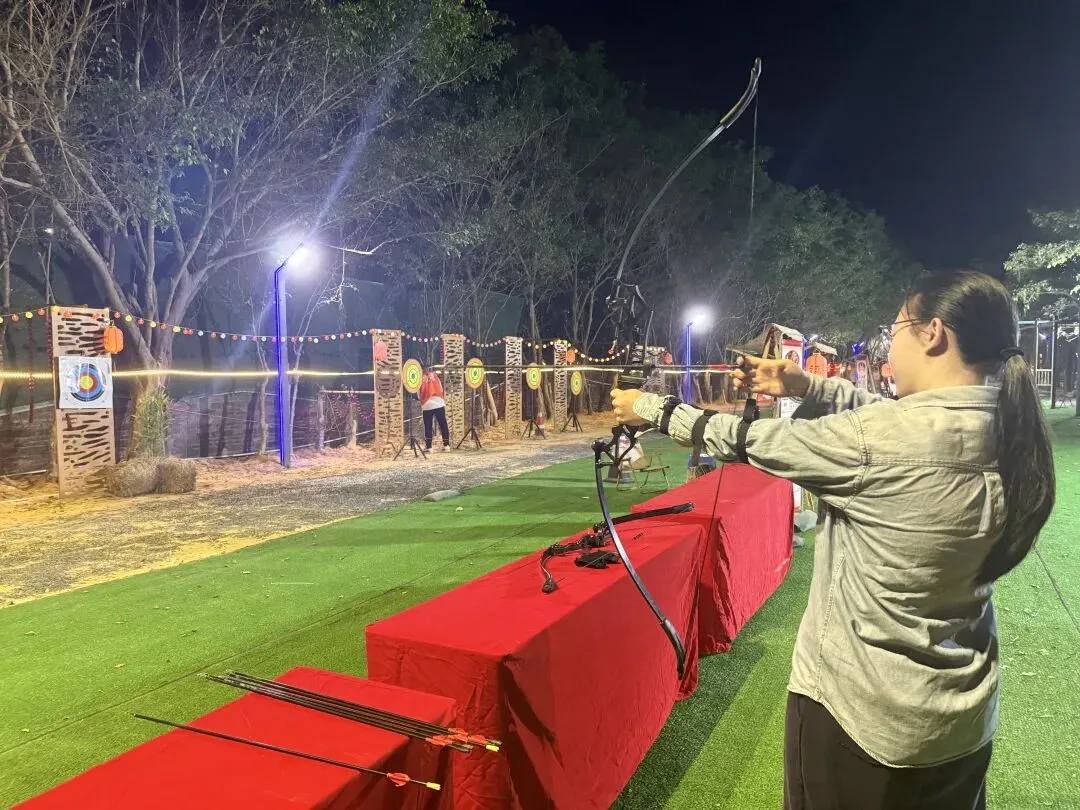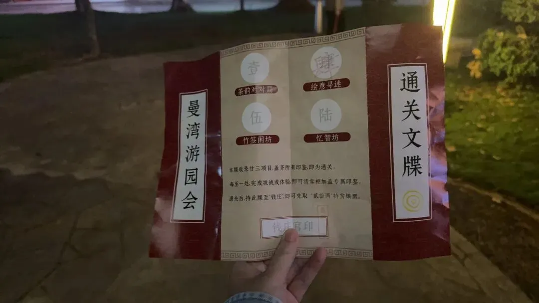 晚上,宝宝睡后,我们下楼参加酒店的游园会。新春期间,酒店设置几十个摊位,用入住送的银票任玩,射箭、投飞镖、夹玻璃珠,还能赌大小、写书法、猜成语等。赢了银票可以换小礼品,我们玩得不亦乐乎。晚些点了盛香亭热卤和古茗当宵夜,满足地回房。